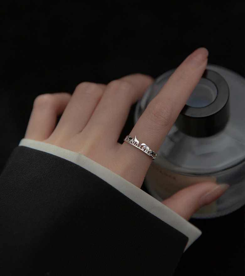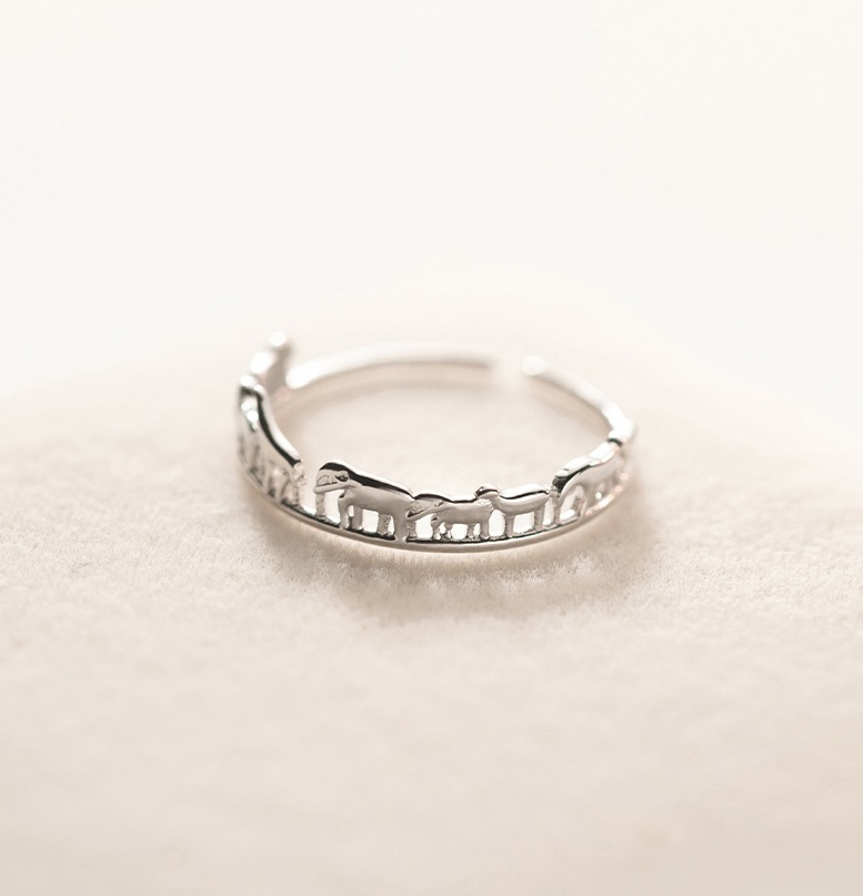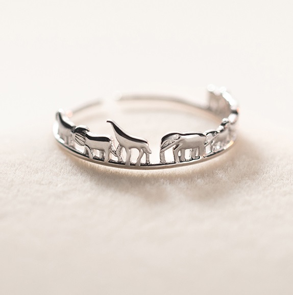 Vonuló afrikai vadállatokat mutat be ez a fantasztikus, állítható méretű ezüst gyűrű.