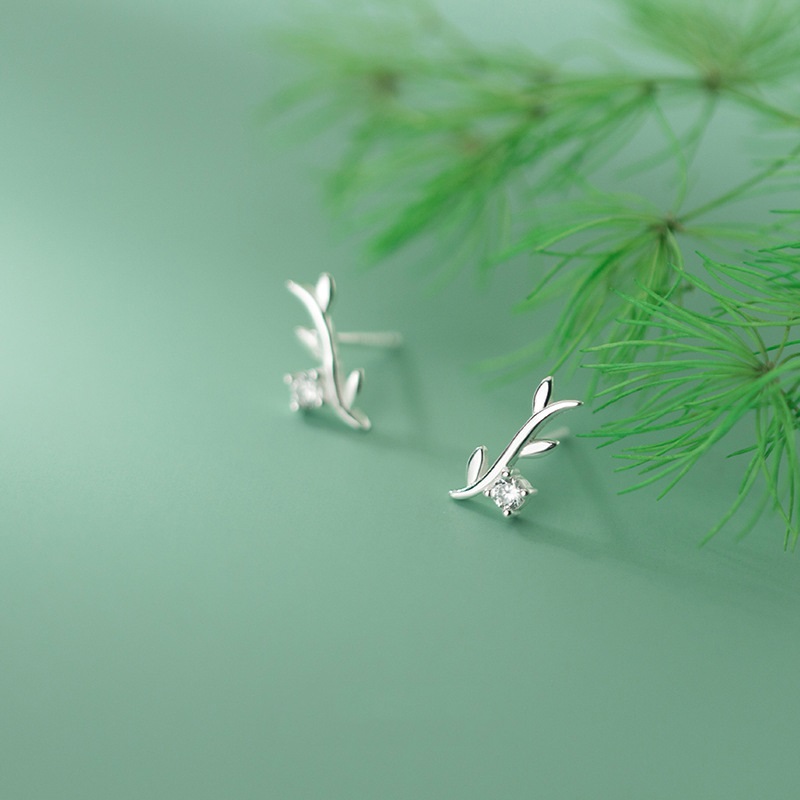 Pici faágat formázó ezüst fülbevaló cirkónia kő díszítéssel! Kifinomult és romantikus ékszer.