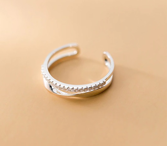 Csavart ezüst gyűrű apró cirkon kövekkel