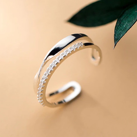 Elegáns és modern ez a csillogó cirkon kövekkel kirakott ezüst gyűrű. Hétköznapi viseletnek és alkalomra is kitűnő választás. 20 db fényesen tündöklő kő díszíti ezt a csodás ékszert. A csavart mintájának köszönhetően eltér a megszokottól, egyedi és formabontó megjelenést kölcsönöz. Mérete állítható. Anyaga: 925 ezüst, Drágakő: cirkon.