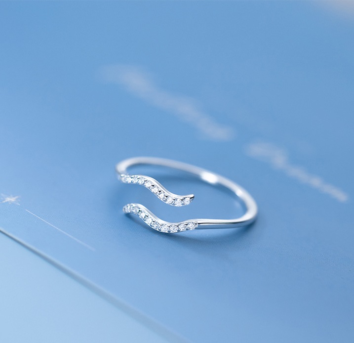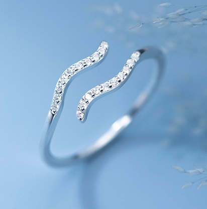 Finom eleganciát képvisel ez a hullámmintás apró cirkon kövekkel gazdagon kirakott, állítható méretű ezüst gyűrű.