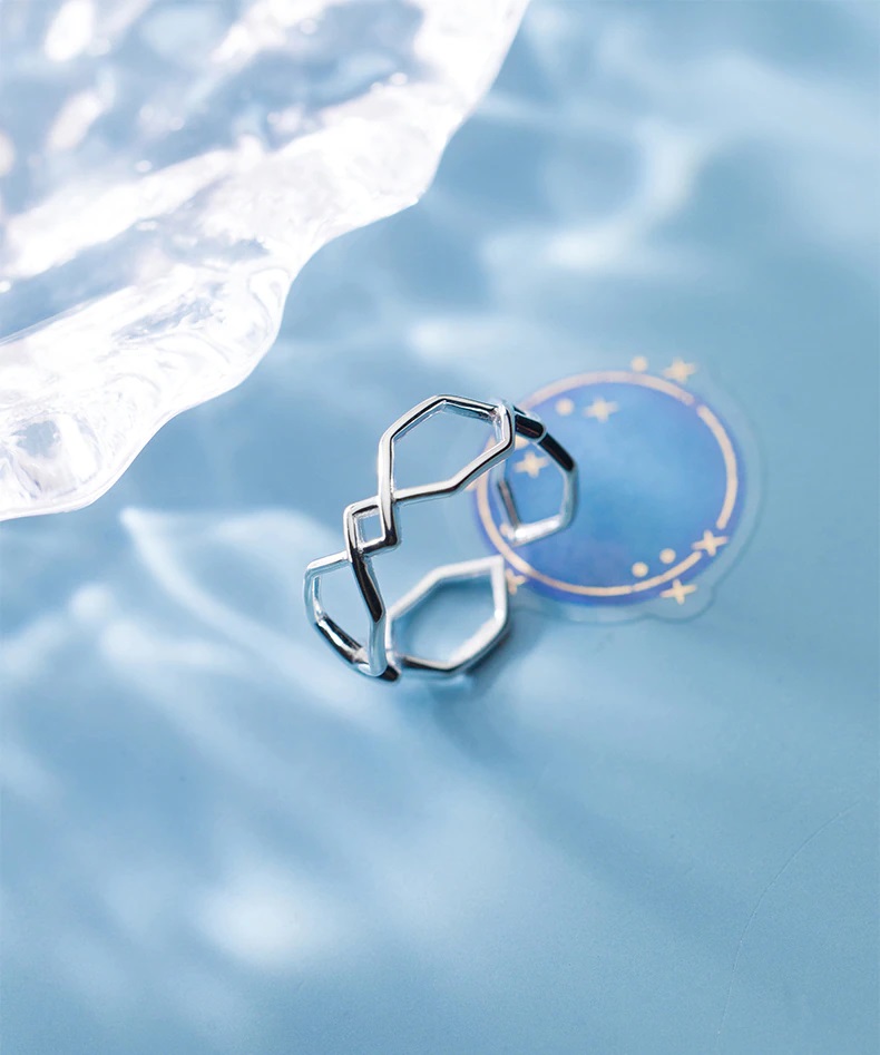 Légy trendi ezzel a különleges geometriai alakzatokból álló ezüst gyűrűvel! Állítható a mérete.