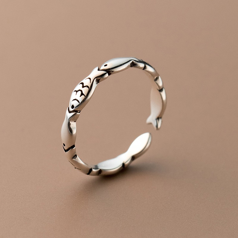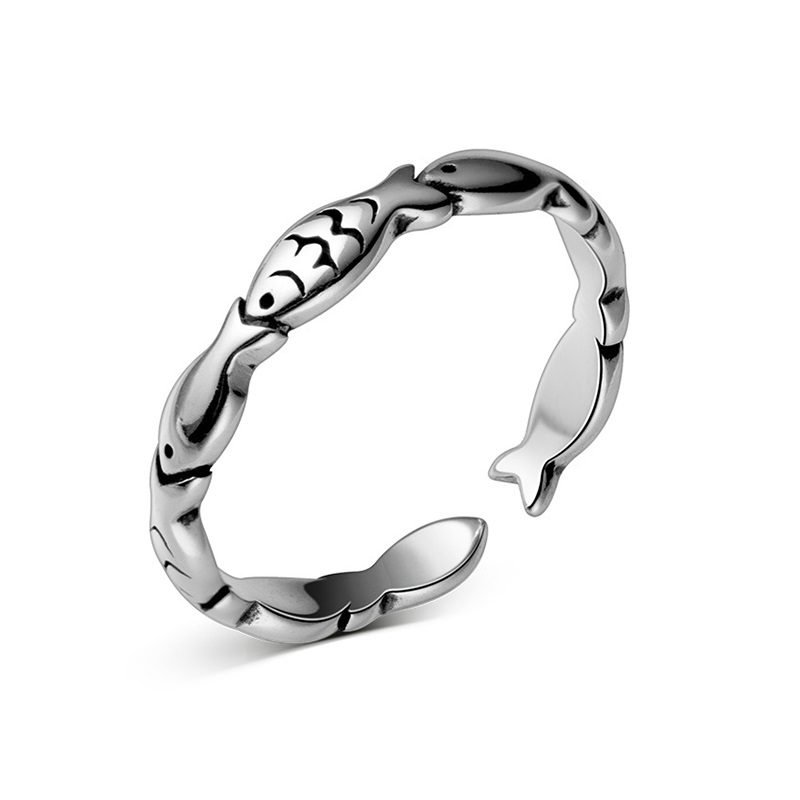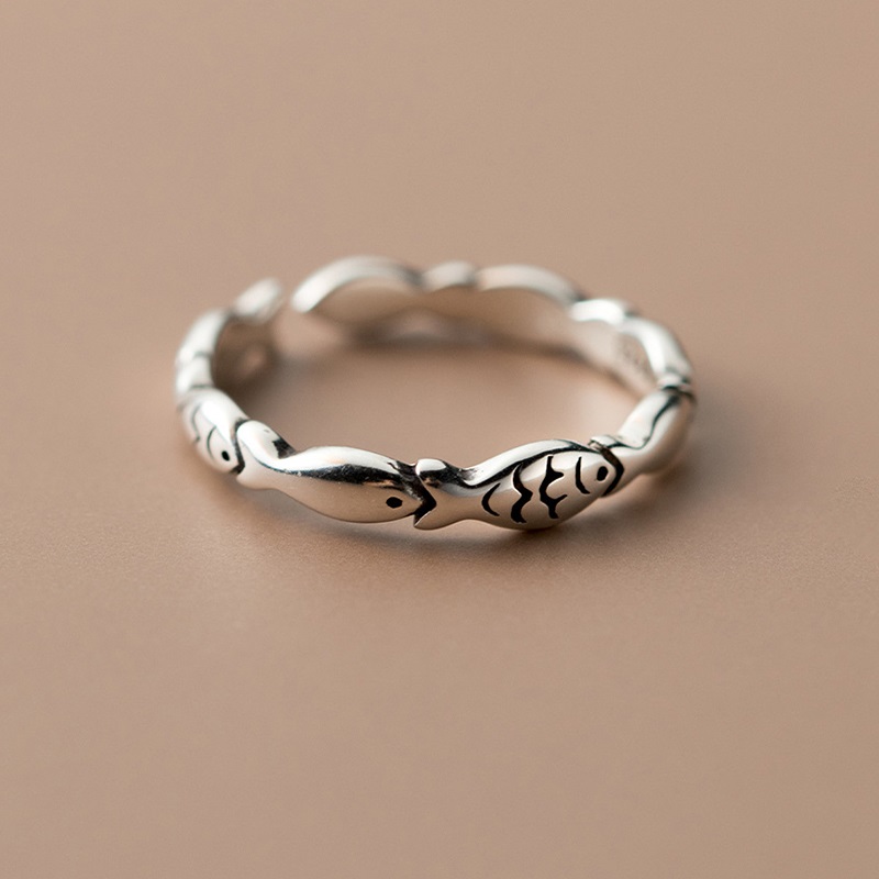 Horgászoknak vagy halak csillagjegyben születetteknek is kitűnő választás ez az állítható méretű halas ezüst gyűrű.