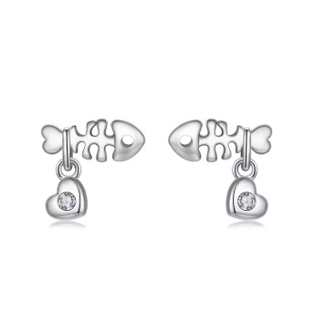 Egy halcsontváz és egy kis lógós szívecske díszítik ezt az ezüst fülbevalót. Mókás és trendi egyszerre!