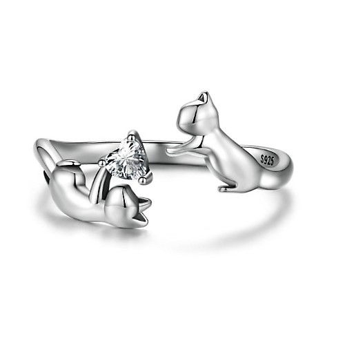 Édesen játszadozó cicákat ábrázol ez az ezüst gyűrű. Állítható a mérete, így akár magadnak, akár ajándékba veszed, biztosan passzolni fog a méret. Anyaga: 925 ezüst. Drágakő: cirkon.