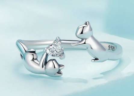Édesen játszadozó cicákat ábrázol ez az ezüst gyűrű. Állítható a mérete, így akár magadnak, akár ajándékba veszed, biztosan passzolni fog a méret.