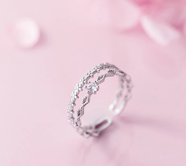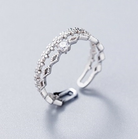 Csodás, nagyon részletes kidolgozású kétsoros ezüst gyűrű cirkon kővel. Állítható a mérete.
