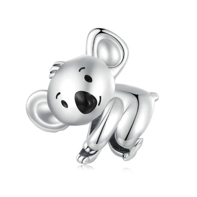 Egy koala díszíti ezt az ezüst charmot. Medálnak is használható. Méretei: 1,1 x 1,1 cm. Charm gyűjtő karkötőkkel kompatibilis. Anyaga: 925 ezüst.