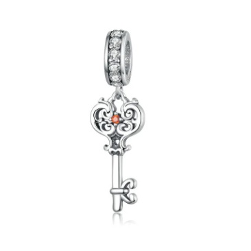 Egy kulcs díszíti ezt az ezüst charmot. Medálnak is használható. Méretei: 2,7 x 0,8 cm. Charm gyűjtő karkötőkkel kompatibilis. Anyaga: 925 ezüst. Drágakő: cirkon.