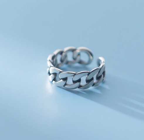 Figyelem! Kis méret! Kisujjgyűrű! Mérete állítható 2-től 5-ös méretig. A láncszemek antikolt hatásúak és nagyon masszívak. Anyaga: 925 ezüst.