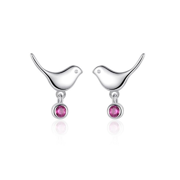 Madárkával és rózsaszín csillogó cirkónia kővel van díszítve ez a bedugós ezüst fülbevaló.