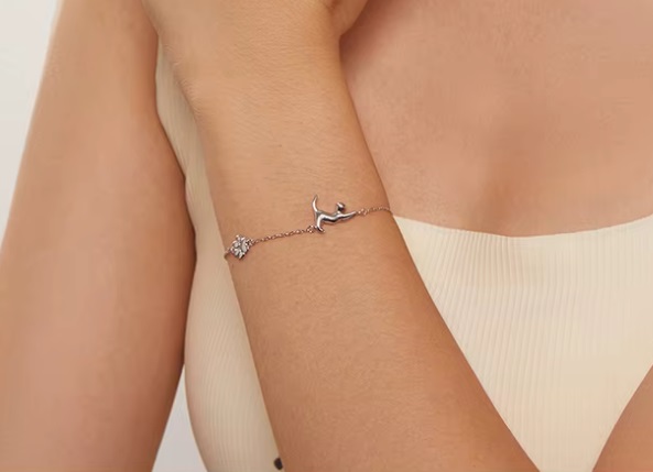 A nyújtózó cicát ábrázoló ezüst karkötő egy igazán bájos és különleges ékszer, amely tökéletes választás minden macskarajongó számára. A finoman kidolgozott cica motívum játékosságot és egyedi karaktert visz a megjelenésbe, miközben elegáns és visszafogott marad, így a hétköznapokban és alkalmi viseletként is könnyedén hordható. A karkötő 925-ös finomságú ezüstből készült, amely tartósságot és hosszan tartó ragyogást biztosít, így hosszú ideig megőrzi szépségét. Könnyed, kényelmes viselet, amely finoman simul a csuklóra, és szinte bármilyen stílushoz jól illeszkedik. Tökéletes ajándék lehet azoknak, akik szeretik az állatos ékszereket, vagy egyszerűen csak egy kedves, mégis stílusos kiegészítővel szeretnék feldobni a megjelenésüket, de saját ékszergyűjteményed különleges darabjaként is garantáltan mosolyt csal az arcodra.