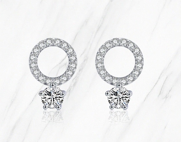 Csillogó cirkónia kövekkel gazdagon kirakott ezüst fülbevaló.