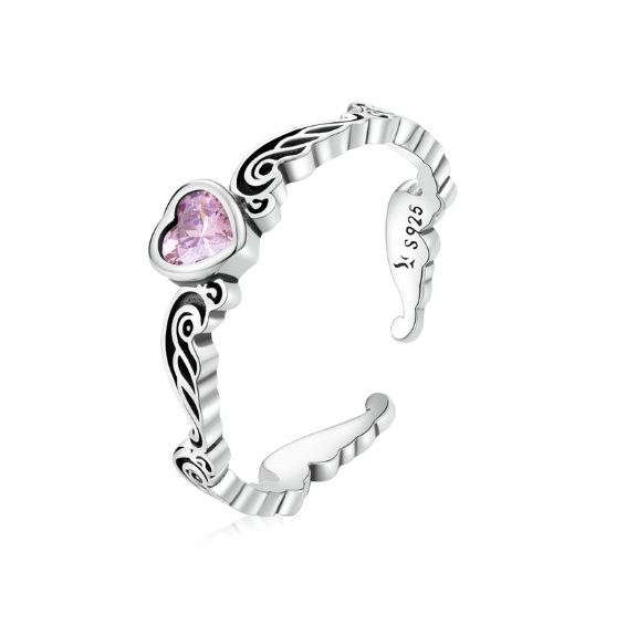 Állítható méretű ez kis rózsaszín szív alakú cirkónia kővel díszített vintage, antikolt sítulusú ezüst gyűrű.