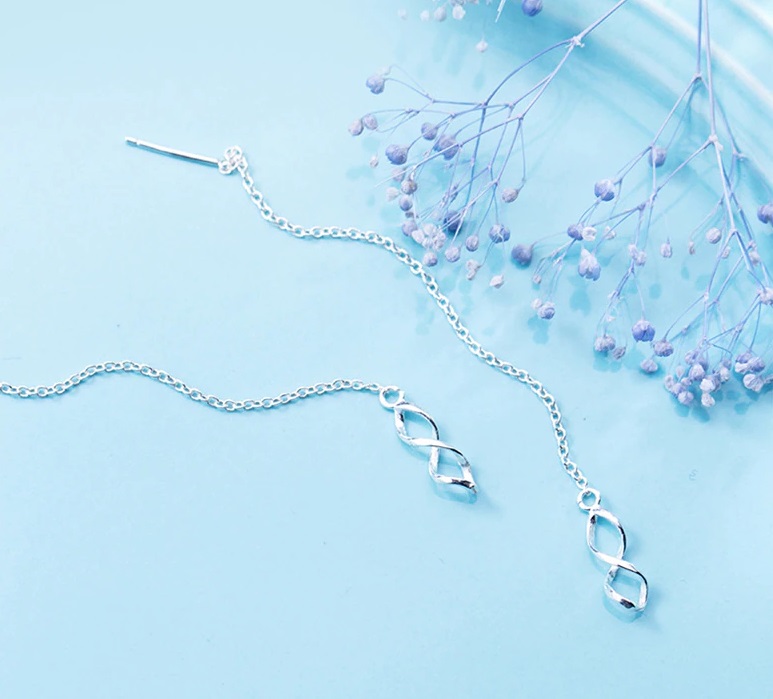 Divatos spirál formájú, fülön áthúzós ezüst fülbevaló. A fülbevaló hosszát te állíthatod be kedved szerint. Anyaga: 925 ezüst.