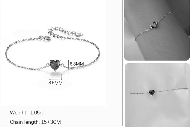 Szív cirkon ezüst karkötő